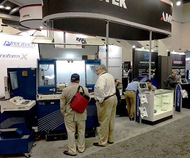 Precitech recently exhibited at Photonics West in San Francisco. On display in Precitech's booth was our Nanoform X on a TMC active vibration cancellation platform. Also on display was a laser assisted machining device from Micro-LAM along with diamond turned infrared and tungsten carbide samples. We also conducted an in booth DIFFSYS training session.