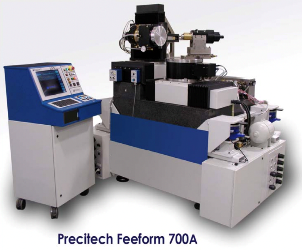 2mm Diameter with 1mm sagital depth, 3 X 3, aspheric lenslet array on 3mm pitch. The part is held with vacuum on the C-Axis Chuck.
