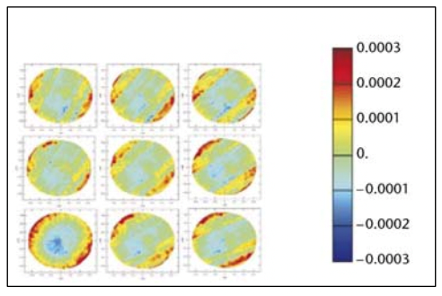 Deviation of lenslets on position in the array, 0.35µ P/V (14 µ” P/V) (graph scale in mm)