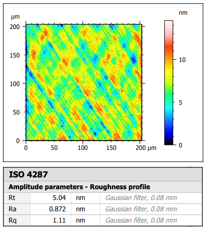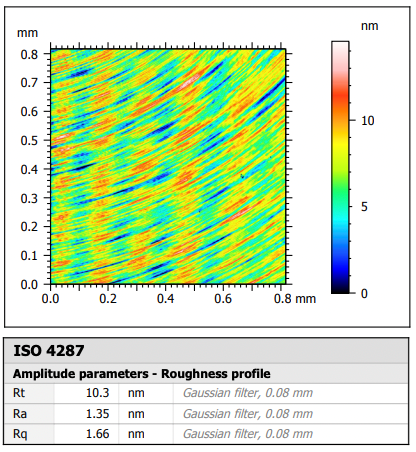 • Surface finish near center: 1.35 nm Ra