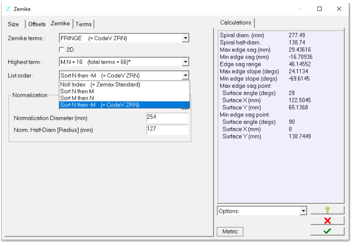 Now Zernike surface types can be imported through Code V file format. With this new List Order is added (Sorting N then -M) that corresponds to Zernike Code V file format.