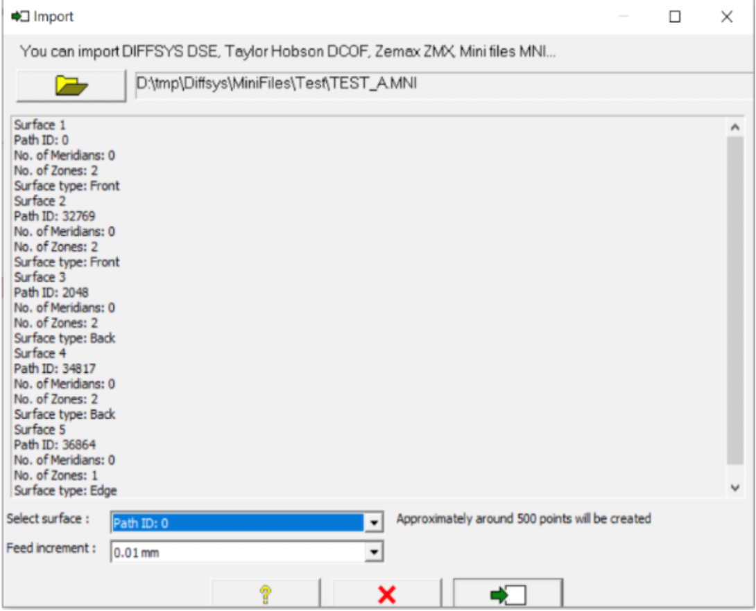• Import Code V ‘SEQ’ files: Diffsys can now import a limited number of surface types from Code V ‘SEQ’ files.